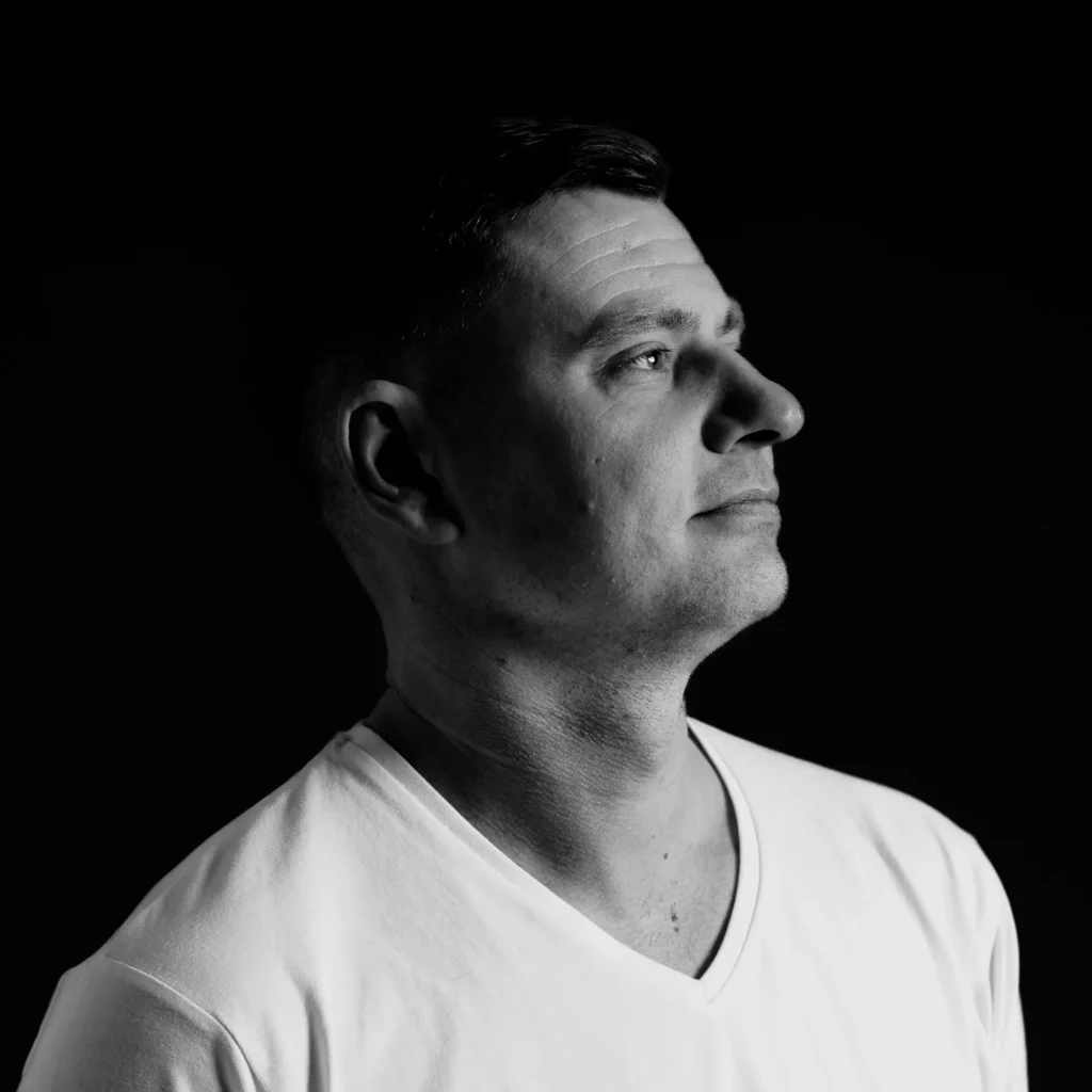 Professional headshots with controlled lighting and rich, dark background tones offer a distinctive, dramatic look. This style adds depth, shadow, and character — a popular choice for entrepreneurs, creatives, and artists who want to build a confident, memorable personal brand. This low-key style is also a firm favourite for actors in more serious roles and, of course, rock musicians.